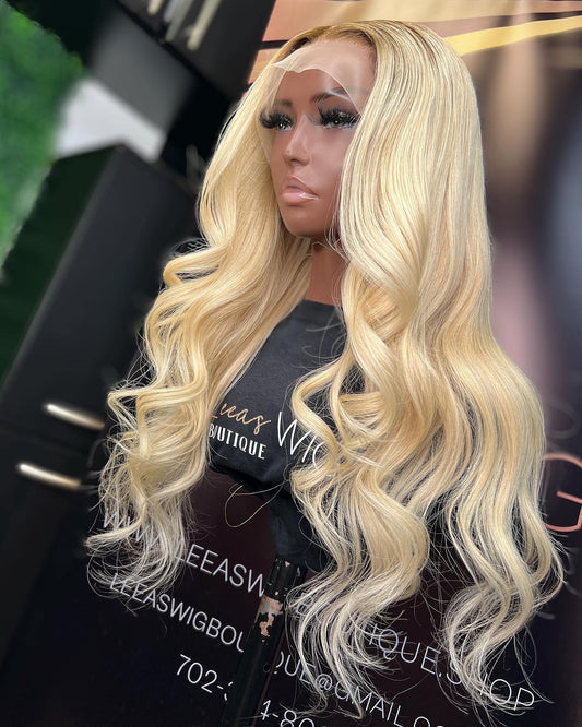 22 INCH 613 BLONDE/ BROWN ROOTS TRANSPARENT FRONTAL LACE WIG