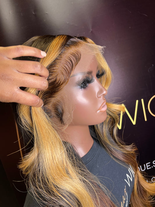 HD LACE FRONTAL WIG BLONDE STRIPE/ CHOCOLATE OMBRÉ 22 Inch