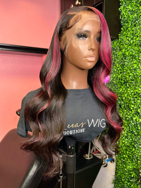 22 INCH HD LACE FRONTAL PINK HIGHLIGHTS WIG