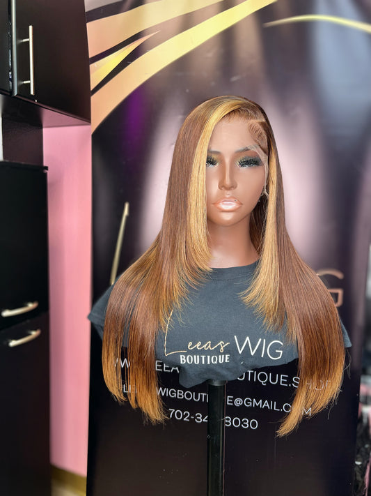 22 INCH HD CHOCOLATE BROWN/BLONDE STRIPE FRONTAL LACE WIG