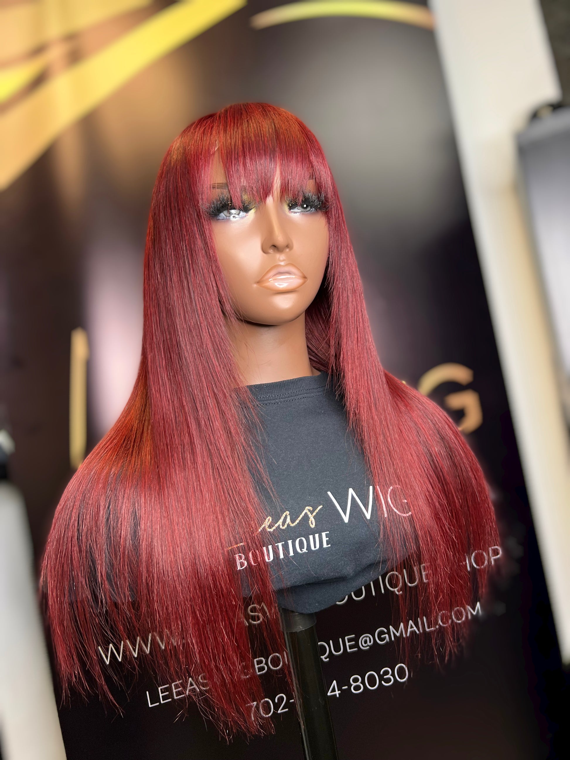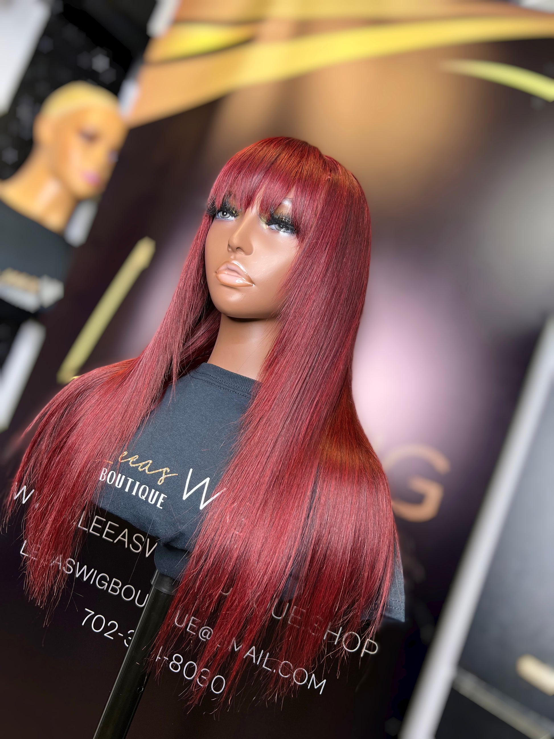 BANG STYLE BURGUNDY 4x4 LACE CLOSURE WIG